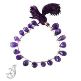 AAA Natural Brazil Amethyst Beads, 7x11mm to 8x15mm Briolette Dark Purple Amethyst Gemstone Bead Necklace, 8 Inch Half Strand Amethyst bead