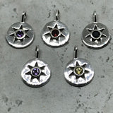 Round and Star 5 Sterling Silver C. Z,Charm Pendant,Amethyst,Garnet,Citrinen,Black Spinel, with bail (AYS-JB-00105)
