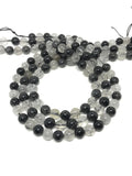 AAATourmalinated Quartz Roundale Beads, 8. mm,16 inch, Black & white,Creative self design of Black Tourmaline