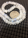 Rainbow Moonstone AAA Top Quality Rondale 5 to 7 mm, Graduated, 18 inches Ful lstrand strong rainbow fire on each bead 100% Natural (#857)