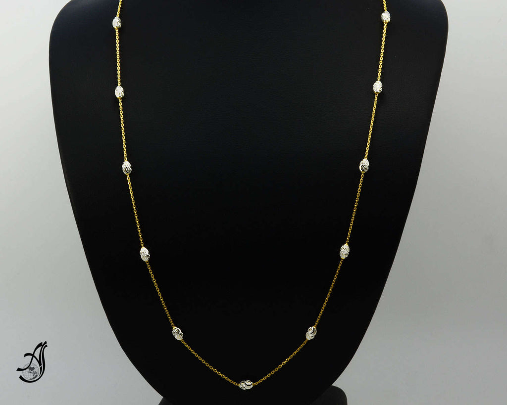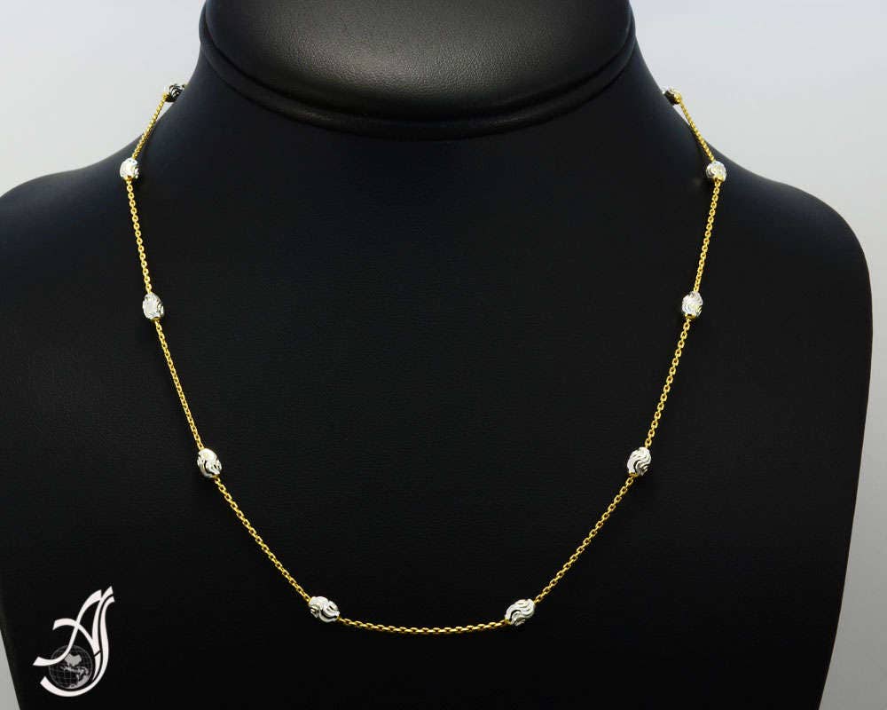 925 Sterling Italian 2 tone(yellow & White)Necklace chain, with station ovals ,Rhodium on, and available in multiple lengths  . It is very popular  & very different ,Unusual chain necklace with and shiny facet on it Glitters for Rich & famous Look l. Fine craftsmanship, made in Italy.