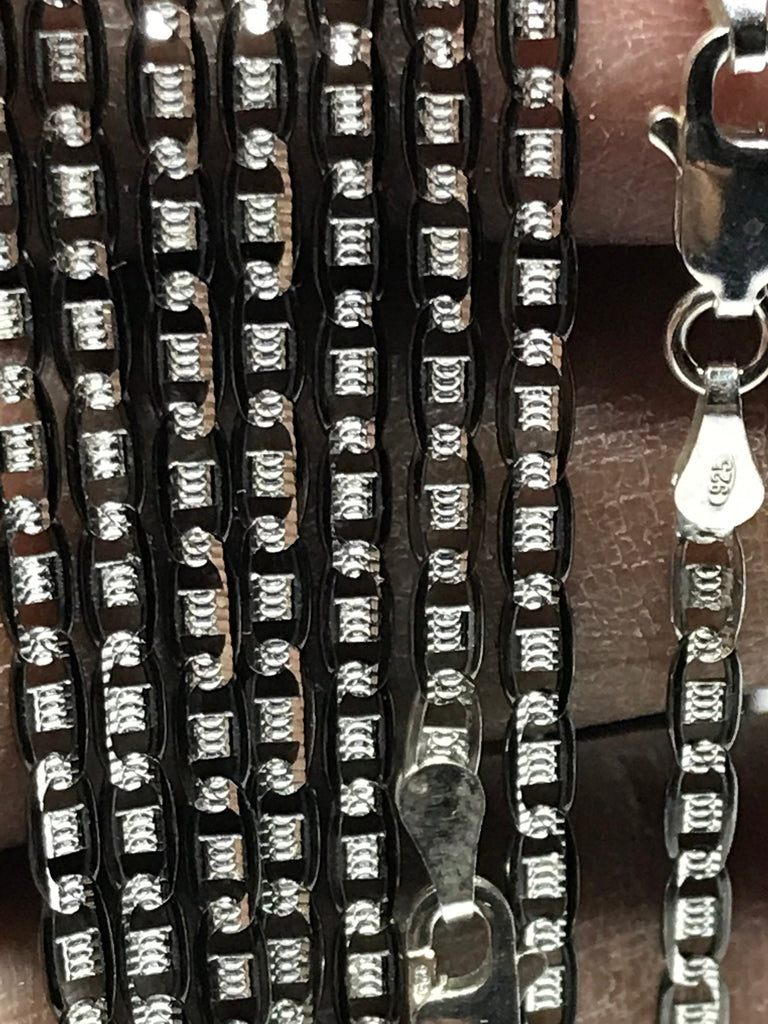 BEAUTIFUL ITALIAN 925 Sterling Siver Chain,Rectangular Cable with self Design Diamond cut facet to shine,Lays flat Rich & famous Look.Black Rhodium on the back & side,it give better glitter on the contrast.