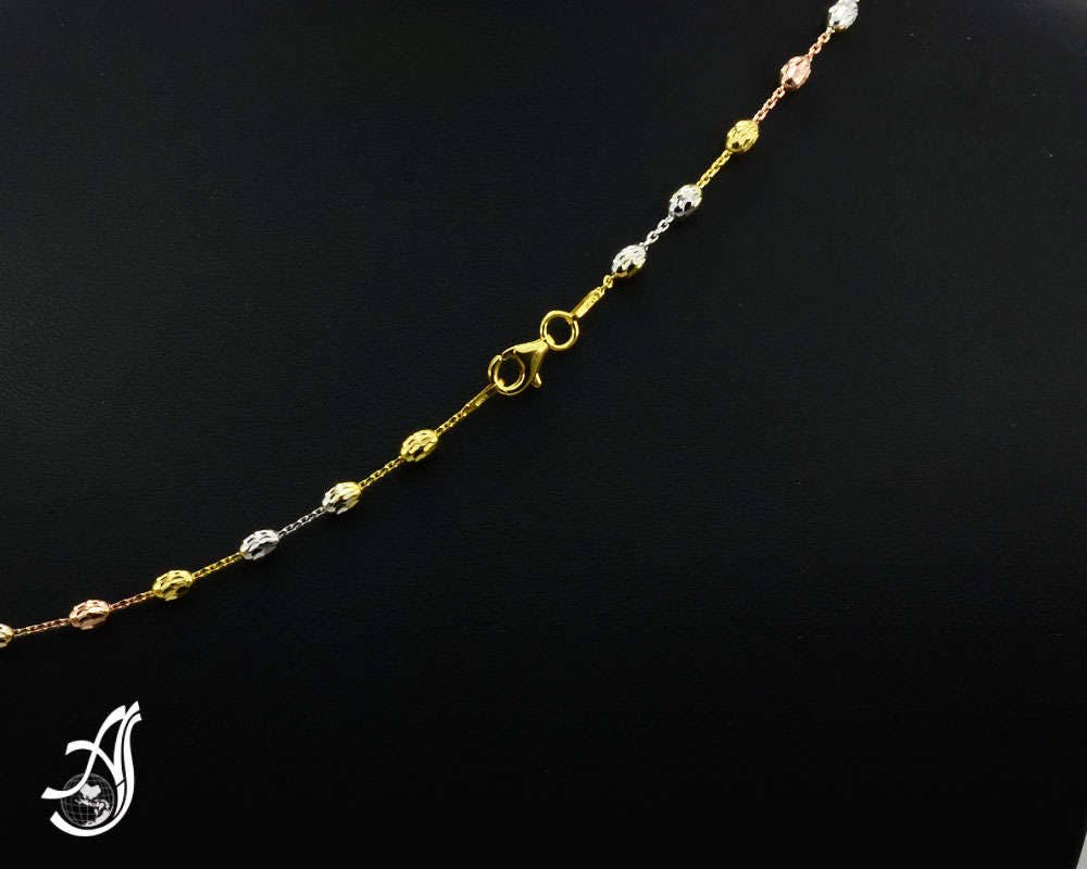 925 Sterling Silver Italian Necklace chain, Tri-color Yellow, Rose & Silver,14 k Gold polish and available in multiple lengths . It is very popular & very different ,Unusual chain necklace with Tricolor Station Ovals and shiny facet on it Glitters for Rich & famous Look l. Fine craftsmanship, made in Italy.