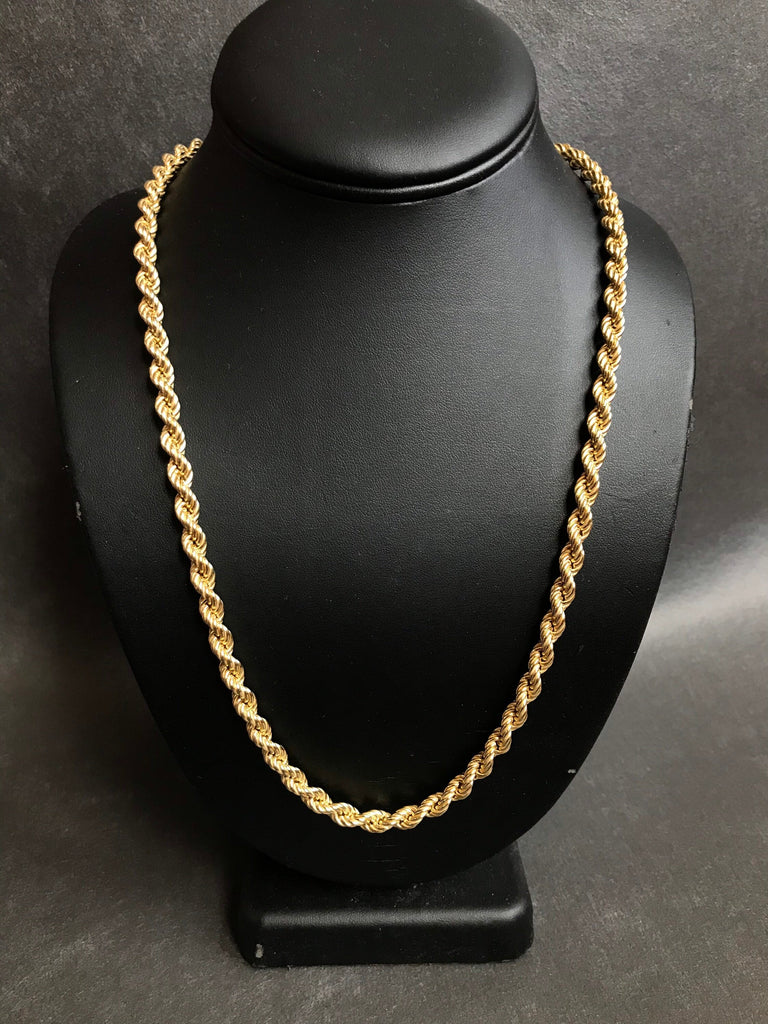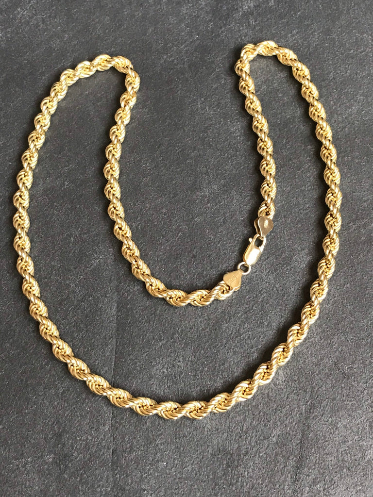 Strong-Thick-Hollow & Heavy-sturdy- 925 sterling Italian Rope Necklace chain, Yellow 14 k Gold polish over silver 24 " & 28 inch .It is very popular & very different ,Unusual chain necklace . it Glitters for Rich & famous Look . Fine craftsmanship, made in Italy.(stamped on the End)