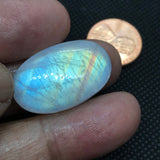 Beautiful Rainbow Moonstone oval shape Cabochon AAA quality 26.8x16.9 mm, Best Blue shine with patterns/designs,100% Natural(# CB -283)