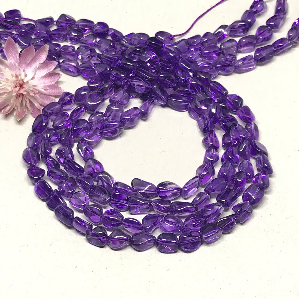 100% Natural Amethyst Bead, 7.5-8MM Tumble Amethyst Gemstone Bead Necklace, Amethyst For Jewelry Making, February Birthstone, 16 Inch Strand