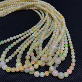 AAA Natural White Ethiopian Opal, 3 - 6.4mm Round Opal Bead Necklace,Multi Fire Smooth Opal Gemstone Bead,16 Inch Opal Beads Strand (#1262)
