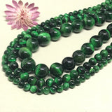Natural Tiger Eye Beads, Green Tiger Eye Beaded Necklace, 6MM, 8MM & 14MM, Green Gemstone, 16 Inch Strand, Gift For Women, Smooth Tiger Eye For Jewelry Making ( # 1165-Green)