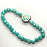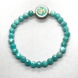 Amazonite Roundale Plain 6.5mm , 16 mm OM charm with 14 k gold filled Streach Bracelet creative. Beautiful N attractive color