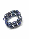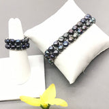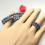 Black Pearl Bracelet N Ring ,On stretch thread, 100% Natural , Expandable fit to all , One size fits to all.,Silver Beads #JB-130