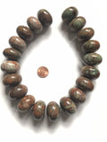 Natural Turquoise Beads,30mm Rondelle Large Turquoise With Mother Rock, Turquoise cabochon Gemstone Beads,December Birthstone Jewelry, Green Turquoise Beads, Brown Turquoise Gemstone Beads, Thickness 20 mm , Rare N Exceptional, Unusual & most Creative, Natural Patterns of color & design on it , Natural color combination.